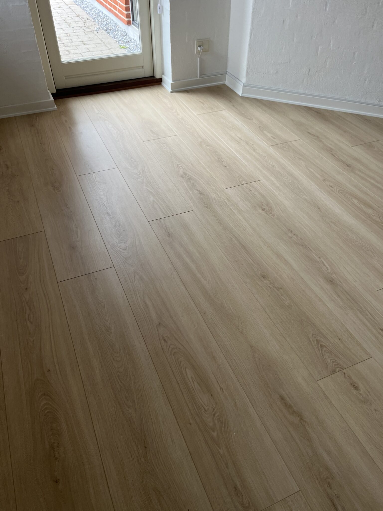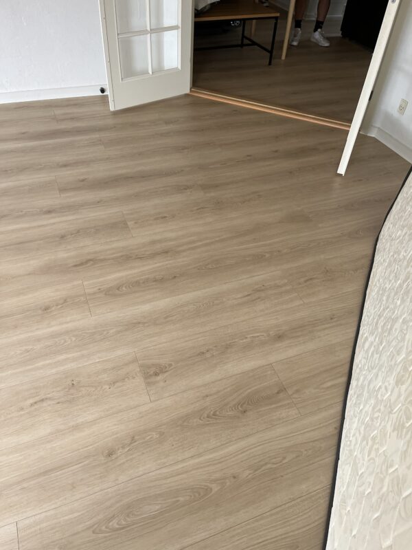 Du vil ikke opleve nogen farveændring da gulvet er UV-lysbestandigt.