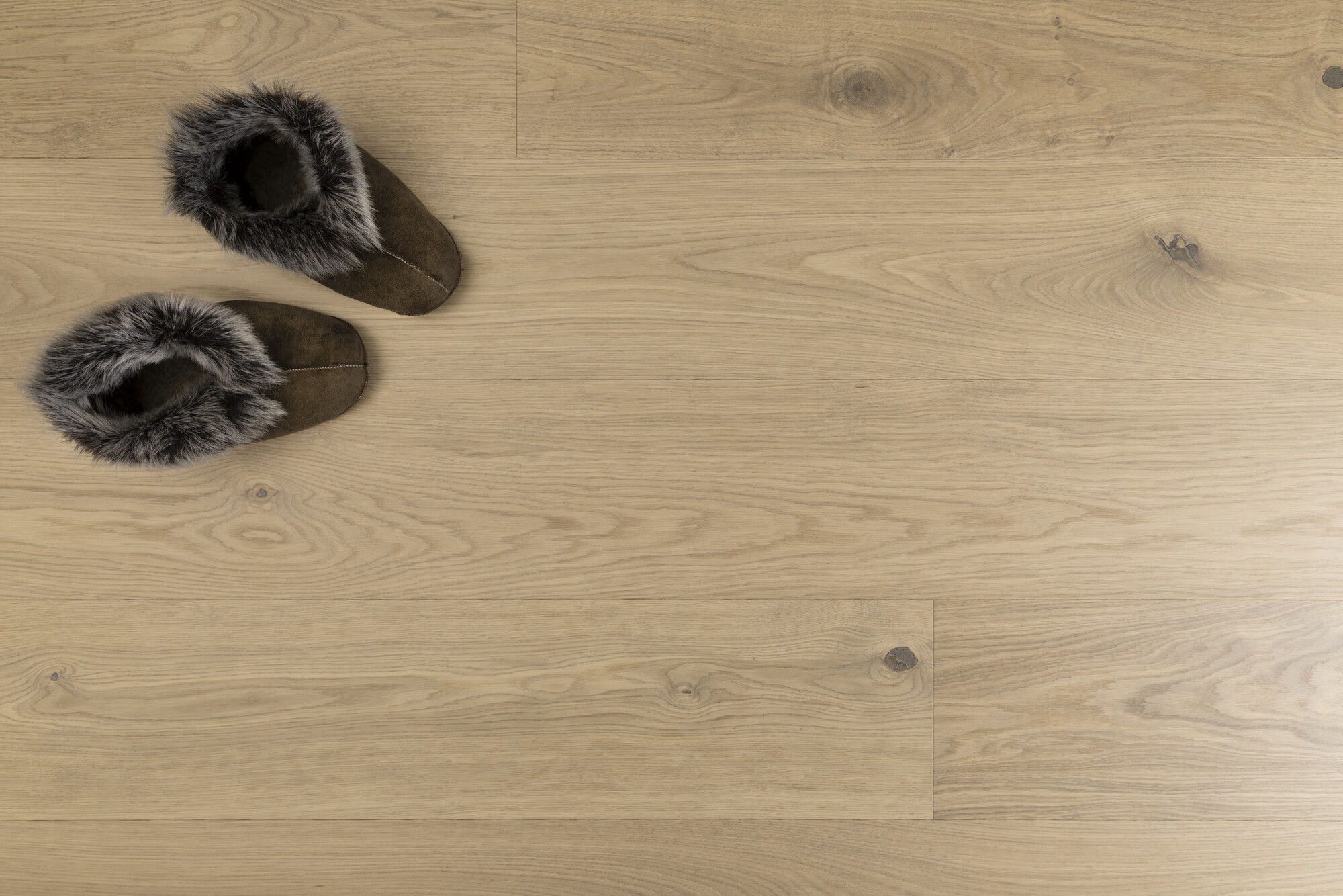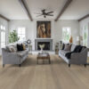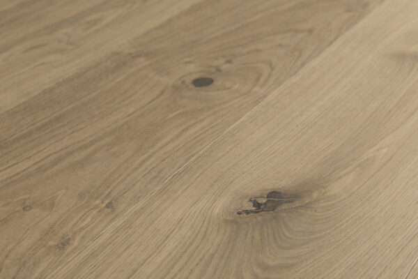 Dette flotte plankegulv i eg giver rummet et lyst, klassisk og elegant udtryk. Den skandinaviske nuance Misty White lysner egetræet og fremhæver træets naturlige struktur, så åretegninger og farvespil træder smukt frem i gulvet.