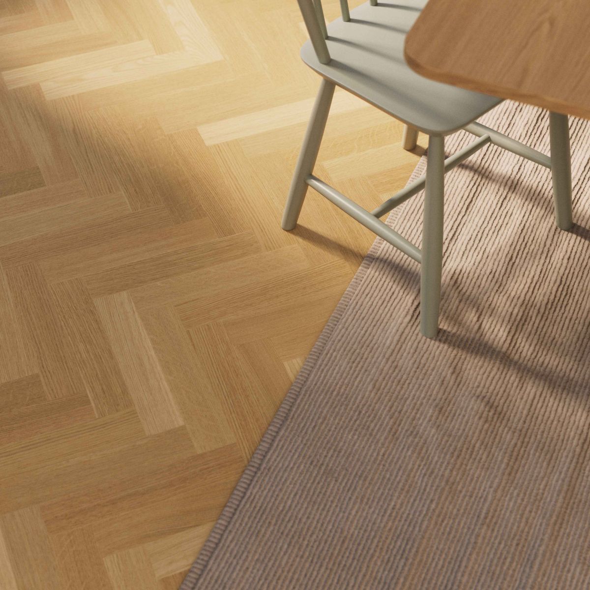Stockholm er et markant Woodura Sildeben 3.0-gulv, der bringer naturens rolige udtryk direkte ind i rummet. Den naturlige farvetone kombineret med den ensartede Select-sortering skaber et balanceret og tidløst fundament, som passer til både moderne og klassiske indretninger. Det klassiske sildebensmønster tilfører rummet elegance uden at dominere.